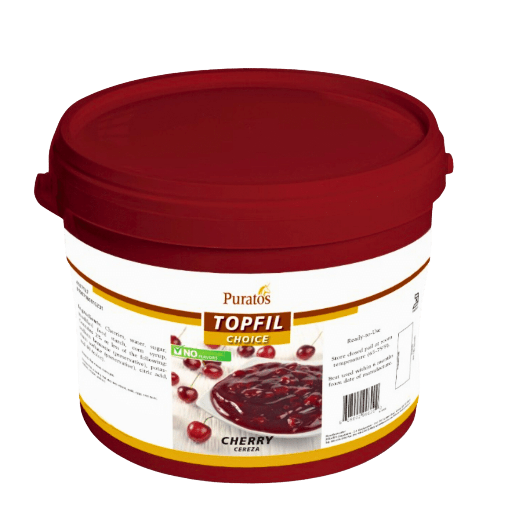 Topfil cherry filling is an all-purpose filling that is ready-to-use and can be used as a topping for donuts, turnovers, pastries, cakes, and other premium baked goods. It is bake and freeze-thaw stable, making it very convenient. Topfil fruit fillings contain large pieces and maximum fruit content, which makes them great for creating delicious fruit pies and other baked goods. The cherry filling is of high quality, delicious, and certified Kosher parve.