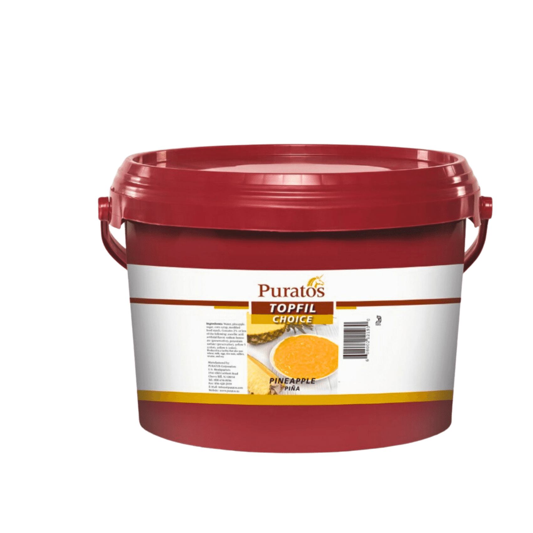 Topfil pineapple filling is a versatile filling that can be used in a variety of baked goods, such as donuts, turnovers, pastries, cakes, and more. It is ready-to-use and made with real fruit. This filling can be baked, frozen, or stored on the shelf, making it very convenient. Topfil fruit fillings contain large pieces and maximum fruit content, which is great for creating delicious fruit pies and other baked goods. The pineapple filling is also certified Kosher parve.