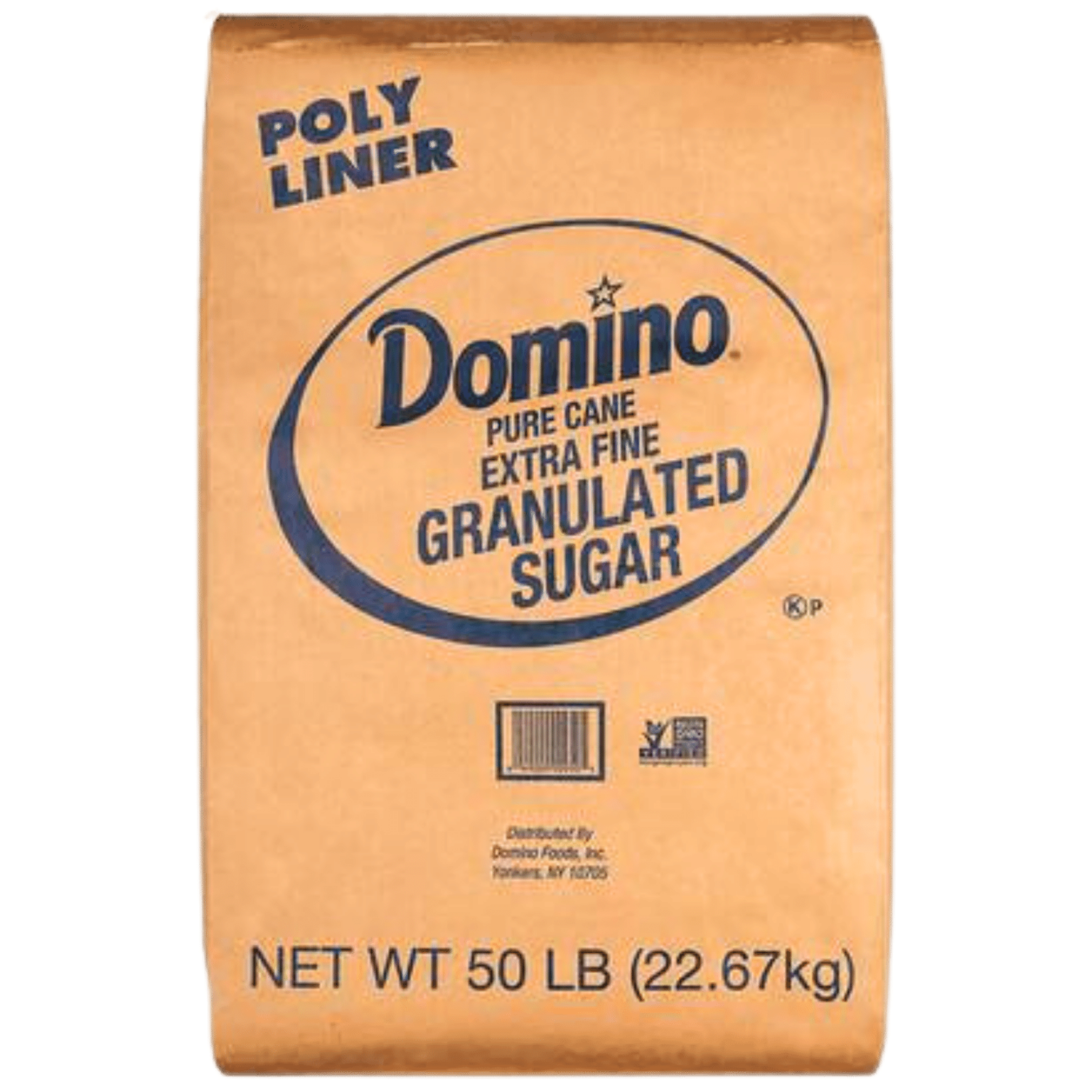 Domino® Sugar has been committed to providing quality sweeteners for over a century. Our 50 lb. Pure Cane Extra Fine Granulated Sugar is ideal for commercial kitchens for baking, preserving, and sweetening beverages. It is Non-GMO and Kosher certified, ensuring a pure and natural ingredient for your recipes. Trust Domino® Sugar for exceptional quality and flavor in all your culinary creations.
